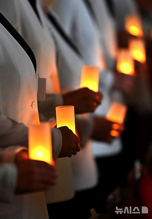이날 선서식에는 나이팅게일로 선출된 간호대학 69명이 '전문간호인으로서 인간의 생명을 존중하고 간호 받는 환우들의 안녕을 위해 헌신할것'을 다짐했다. 2025.10.28. jtk@newsis.com
