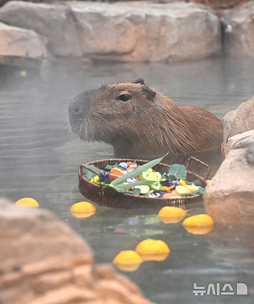 [용인=뉴시스] 김종택 기자 = 15일 경기 용인시 에버랜드에서 카피바라가 온천욕을 하며 겨울을 즐기고 있다. 2026.01.15. jtk@newsis.com