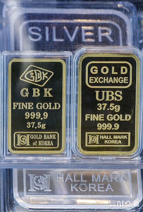 [서울=뉴시스] 정병혁 기자 = 21일 서울시내 금은방에 골드바와 실버바가 진열되어 있다.