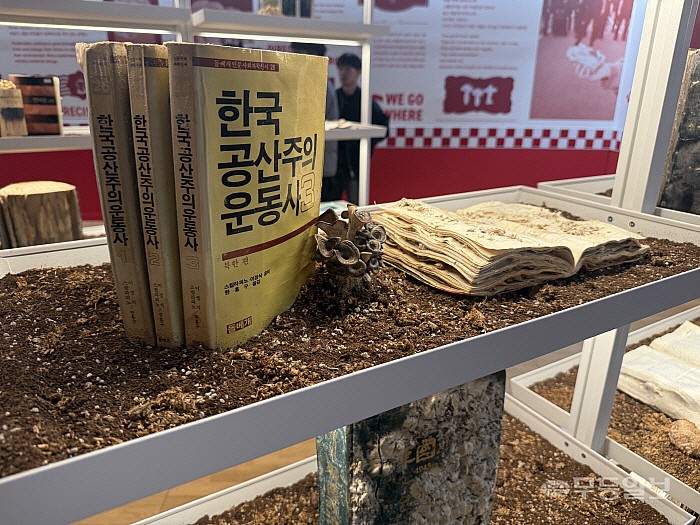 이들의 또 다른 작품 ‘독버섯’은 저항의 역사에 대한 새로운 해석을 제시한다. 작가들은 제주 4·3, 여순 10·19, 5·18 민주화운동의 기억을 사회 위협 요소인 ‘독버섯’으로 규정하며 침묵을 강요해온 지배 이데올로기에 주목했다. 오히려 독버섯을 망각에 맞서는 저항의 도구로 재정의하고, 이를 배양하는 공간으로 패스트푸드점을 설정했다. 과거 민주화 운동가들의 책장에 꽂혀 있던 ‘불온 서적’을 매개로 버섯을 키워내고, 현대 사회의 가장 빠른 확산 매체인 ‘배달’ 시스템을 통해 저항의 메시지를 사회 곳곳으로 유통하겠다는 의도다.