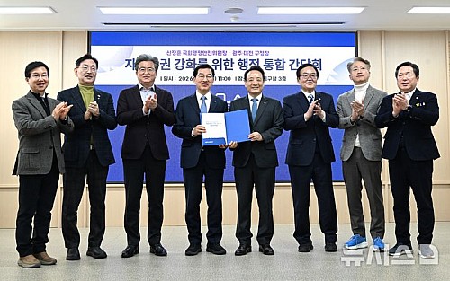 신정훈 국회의원과 광주시구청장협의회, 대전시 중구·유성구는 8일 오전 광주 동구청에서 '자치분권 강화를 위한 행정통합 간담회'를 열었다.